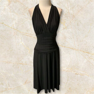 Nine West Size 14 Sleeveless Black V Neck Dress W Ruched Waist
