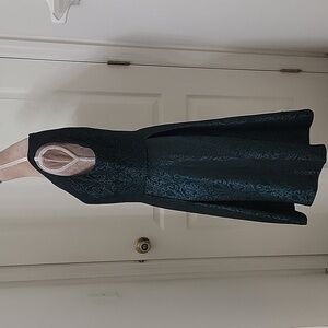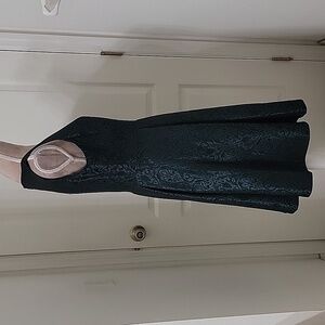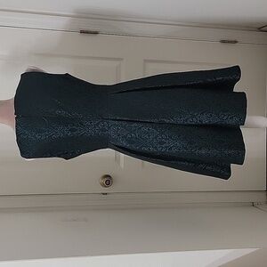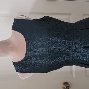 Nine West, Size 6, NEW with Tag Shiny Green / Black Damask Fit & Flare Dress. *NOTE: Apparently this dress came with a belt, there is NO belt or beltloops on this specific one. Crew neckline; Fit & flare silhouette. Hidden back zipper closure. Pleated skirt