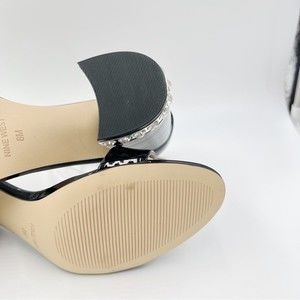 Nine West Size 8 Abigail Black Patent Leather Jeweled Block Heel Dress Sandals