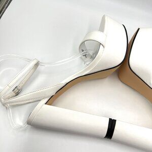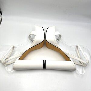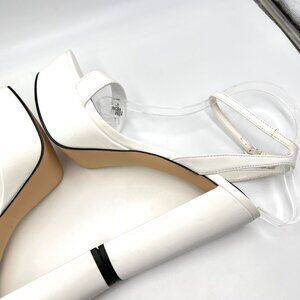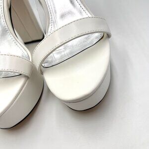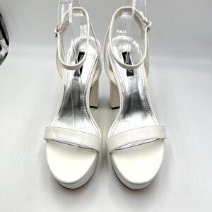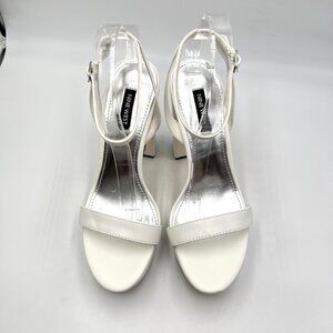 Nine West Size 8.5 Uknow White Faux Vegan Leather Platform Sandals Heels Shoes