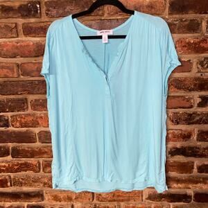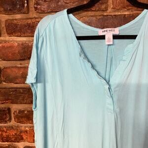 Nine West Sky Blue Short Sleeve Henley Button Top Women's Size Large