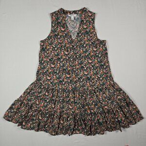 This Nine West sleeveless floral mini dress in size Small is perfect for spring, summer, and resort styling. Crafted from 100% breathable rayon, it features a multicolor floral pattern, a split neckline, and a tiered ruffle hem for a soft, flowy silhouette. Ideal for boho-inspired casual outfits, brunch looks, or vacation wear.