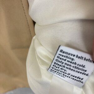 Hand wash cold, remove belt before washing, only non-chlorine bleach when needed, flat dry, cool iron if needed