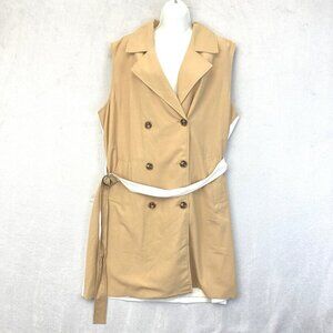 Nine West Sleeveless Vest Womens 2XL Tan White Belted Double Breasted Trench