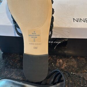 Gorgeous black stone and glass strappy sandals w basically a flat heel. Size 5. NIB.