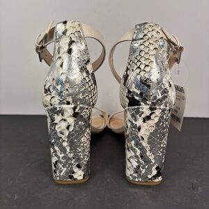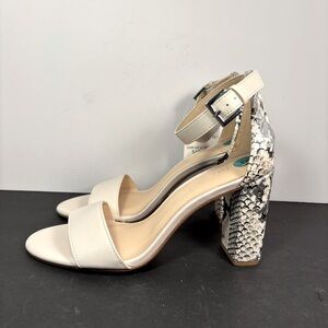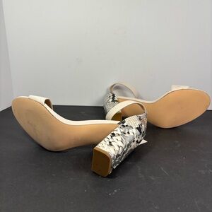 Nine West Snakeskin Block Heel Sandals Size 8 Ankle Strap Ivory Black