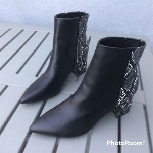 Nine West Snakeskin Print Embossed Ankle Booties These beautiful Nine West black snake embossed shelbold Boots are great like new conditions