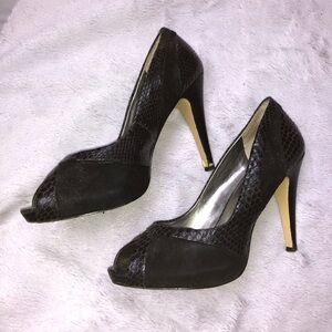 Pre owned condition. There is wear on side and heel. Please see pictures. 4 inch heels.