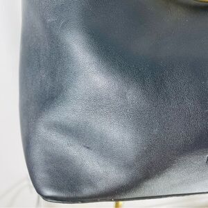 Nine West Soft Leather Black Handbag w Large Brass Gold Handles & Optional Strap