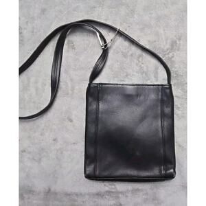 Nine West Solid Black Leather Crossbody Bag Purse Single Strap