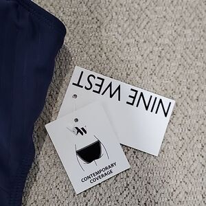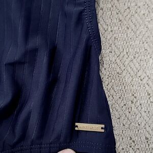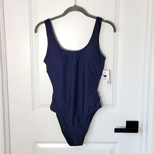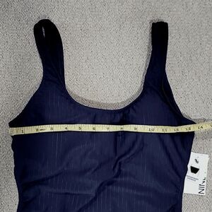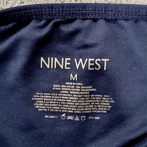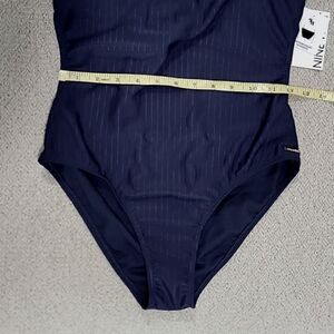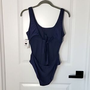 Nine West Solid Navy Blue Ribbed Tie Back One Piece Swimsuit- Size Medium