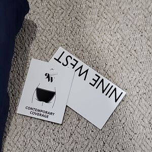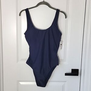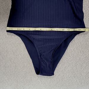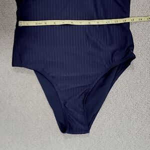 Nine West Solid Navy Blue Ribbed Tie Back One Piece Swimsuit - Size Large