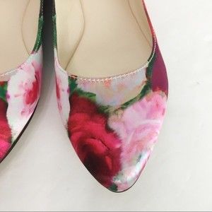 Nine West Speakup Women’s Pointed Toe Red Pink Floral Flower Rose Ballet Flats 6
