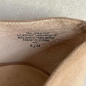 Nine West women's Speed Up pump. Tan suede. Peep toe. Cute and comfortable. Some wear to soles and heels. Size 8.5