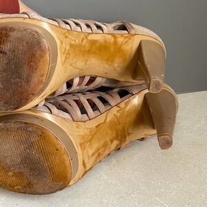 Nine West Speed Up Suede Pump Heel 8.5 Suede Tan Camel Platform Peep Toe