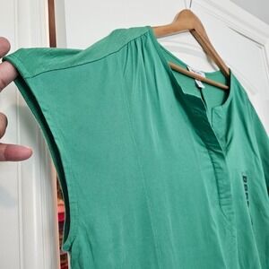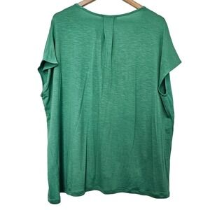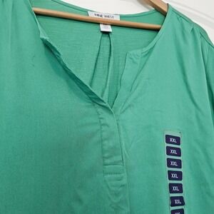 Nine West Split Neck Blouse Womens XXL Green Short Sleeve Soft Lightweight