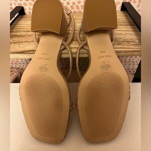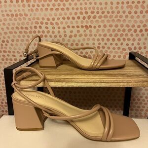 Step out in style in these Nine West dress sandal. This sandal features an adjustable ankle strap, modern square toe with a block heel. This sandal is perfect for dressing up or down.