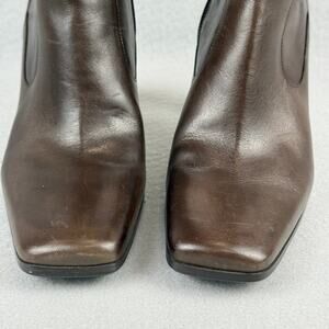 Nine West Square Toe Leather Boots Zip Up High Ankle size 8M Brown Chunky Heel
