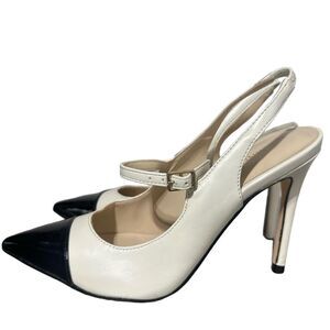 Elevate your look with these stunning Nine West slingback heels, featuring a sophisticated two-tone design. Perfect for adding a touch of classic elegance to any professional or dressy ensemble.
