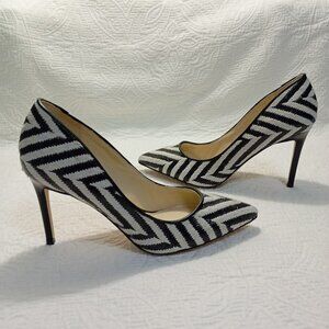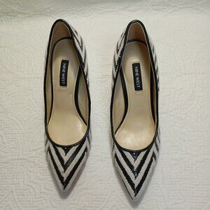 Nine West Stilettos Heels Size 6M Black & White Chevron Pointed Toe Womens