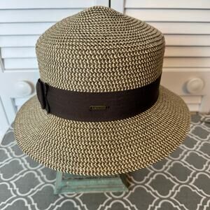 Nine West Straw Bucket Hat With Bow Women’s New Without Tag Brown Tan Preppy