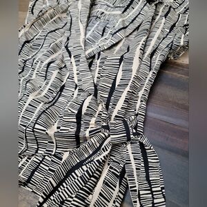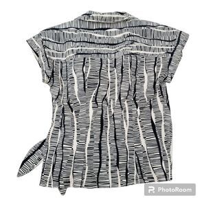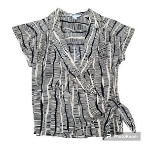 Nine West Structured Utility Wrap Blouse Short Sleeve Cream & Black Size XS