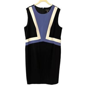 Nine West Suit Dress w/ Jacket Size 16 Black & Violet Pattern Fully Lined NWT