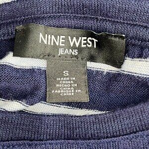 Nine West Sweater Top Women's Missy Small Blue Striped Long Sleeve Casual Oversized