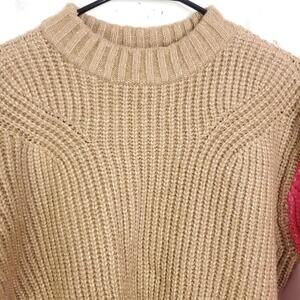 Nine West Sweater WOmens L Colorblock Pink Arms Chunky Knit Crewneck Casual
