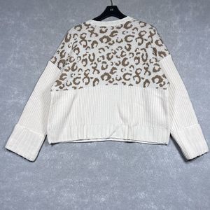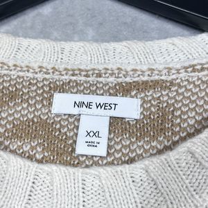 Nine West Sweater Womens Size XXL Cream Tan Animal Pattern Ribbed Long Sleeve