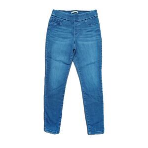 Nine West Sz 6 Women's Mid Rise Medium Wash Stretchy Skinny Pull On Jegging Jeans with elastic waistline. 28" waist at rise, 10" rise, 28" inseam.