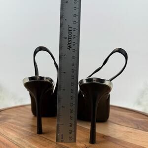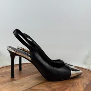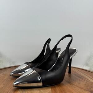 Nine West Sz 8M Black Silver Cap Toe Pointed Slingback Stiletto Heels Pumps Chic