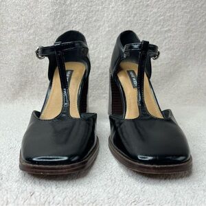 Nine West T-Strap Faux Leather Block Heels-Women’s 6-Black/Brown-Y2K-90s-Preppy