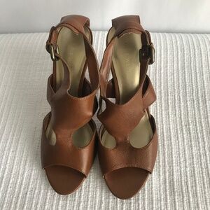 Nine West tan heels. Gently used...size 8M...IT (HAS SEVERAL MARKS..SEE PICTURES)...see photos for details...011520
