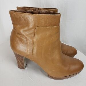 Nine West Tan Leather 3' Heel Booties Sz 11M. Boots has a few blemishes as pictured otherwise in Great Condition.