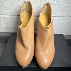 Chic tan leather heels by Nine West. Ideal for versatile styling.