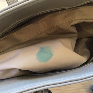 The large tote has some inside staining, as shown in pictures, including one green ink stain.