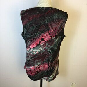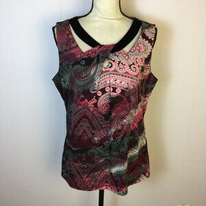 Nine West Tank Top Blouse Size L Womans Black Pink Paisley Keyhole Twist Neck