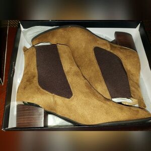 Nine West Taye Women's Brown NWT 10W Faux Suede Chelsea Pull On Ankle Boots