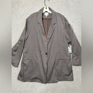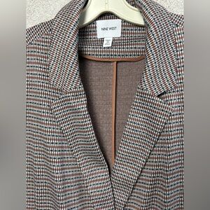 Nine West The Relaxed Blazer Women's Brown Houndstooth Plaid Jacket