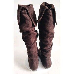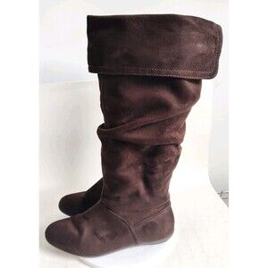 Nine West Thigh High Over The Knee Flat Slouchy Boots Faux Suede Size 9 Brown