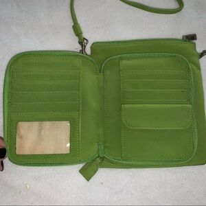 Exterior pick zip around: holds id, 8 credit card, coin pocket & 2 spaces for bills