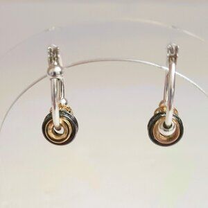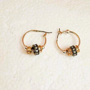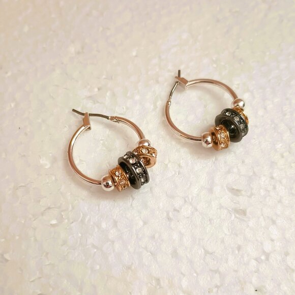Nine West Tri Tone Hoop Earrings Slider Beads with Rhinestones