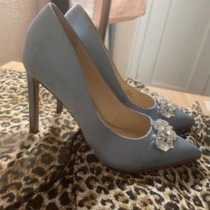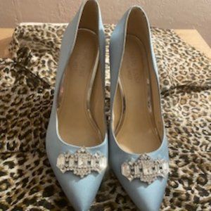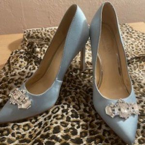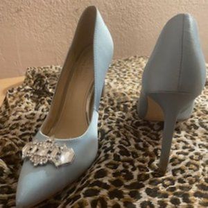 Nine West Trulove Pointy Toe Pumps Light Blue Satin Size 7