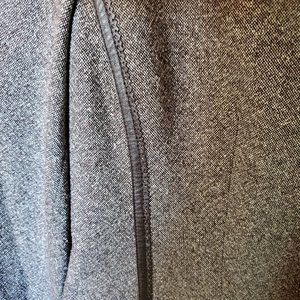 Flattering fitted jacket with leather ribbing at seams and at pockets. Brown tweed with detachable collar via buttons on the inside (closure is good and secure). Content is 60% wool 23% nylon 15% silk 2% other. Dry Clean. Nine West size 16. 23" across from underarms. Like new condition. Smoke free, pet free, fragrance free home.