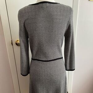 Nine West V-Neck Sweater Dress M | Chevron + Houndstooth | Chic Monochrome Knit