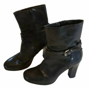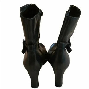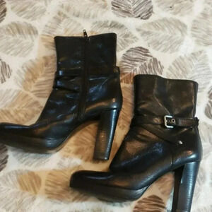 Nine West Varina 7M black leather 4” heeled ankle moto boots