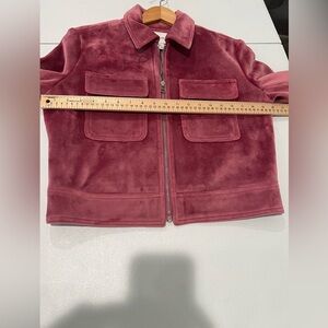 Nine West Velvet Crop Jacket Woman's Size S Full Zip Pink Pockets Coat