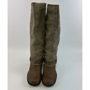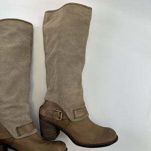 Nine West Vintage America Dorada Boots Tall Pull On Taupe Suede Leather Womens 8.
