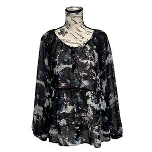 Nine West Vintage America Sheer Babydoll Blouse Women’s Medium Long Sleeve